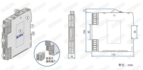 · 采用標準的35mm DIN導軌卡式安裝??砂尾宓慕泳€插頭端子,彈簧壓緊連接。